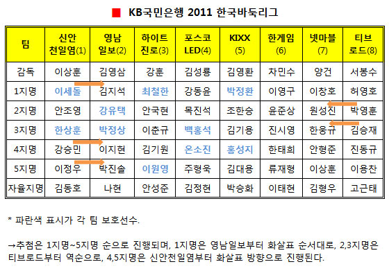 2011³â Çѱ¹¸®±×¸¦ ¶ß°Ì°Ô ÇÒ °¢ ÆÀ ¼±¼öµéÀÌ ¸ðµÎ È®Á¤µÆ´Ù.