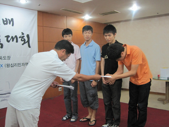 ¡ã ¼ÒÈ£¹è ¹ÙµÏ´ëȸ ÀÔÀå»çµé¿¡°Ô ½Ã»óÀ» Çϰí ÀÖ´Â ±Ç°©·æ.