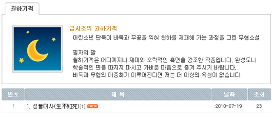 ŸÀÌÁª¿¡¼´Â ¹ÙµÏ¸¸È ¡®¹ÙµÏ±¤ ¹ÚºÎÀ塯¿¡ ÀÌ¾î ¼Ò¼³ ¡®¿ùÇϱⰴ(êÅù»Ñ¤ËÔ)¡¯À» 7¿ù 19ÀϺÎÅÍ ¿¬ÀçÇÑ´Ù. ¡®¿ùÇϱⰴ¡¯Àº ¾î¸° ¼Ò³â ´Ü¹¬ÀÌ ¹ÙµÏ°ú ¹«°øÀ» ÀÍÇô õÇϸ¦ Á¦ÆÐÇØ °¡´Â °úÁ¤À» ±×¸° Èï¹Ì À§ÁÖÀÇ ¹«Çù¼Ò¼³ÀÌ´Ù.