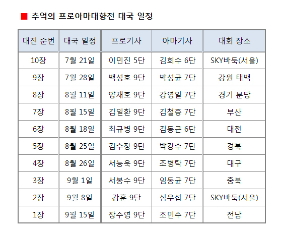 µ¿¾ç»ý¸í ÃÊû Ãß¾ïÀÇ ÇÁ·Î¡¤¾Æ¸¶´ëÇ×ÀüÀÇ ´ë±¹ÀÏÀº ¼ö¿äÀÏÀÌ´Ù. ¿ÀÇÁ¶óÀÎÀ¸·Î ÁøÇàµÇ¸ç Àú³á 7½Ã ŸÀÌÁª ´ë±¹½Ç »ýÁß°èÇÑ´Ù. ¶ÇÇÑ SKY¹ÙµÏ¿¡¼µµ ¹æ¼ÛµÉ ¿¹Á¤ÀÌ´Ù. ÈÄ¿øÀº µ¿¾ç»ý¸í(ÁÖ).