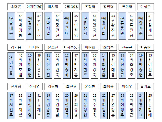 ·©Å· »óÀ§ÀÚµéÀÌ ´ë°Å ½Â¸®ÇÑ °¡¿îµ¥ 3¶ó¿îµå´Â 5¿ù 18Àϳ¯ Ä¡·¯Áö¸ç ¿ª½Ã Â÷µî½ÃµåÁ¦·Î ÁøÇàµÈ´Ù. 3¶ó¿îµå ÁÖ¿ä´ë±¹Àº ¿ÀÈÄ 7½ÃºÎÅÍ ¹ÙµÏTV¿¡¼ »ýÁß°èÇÑ´Ù.