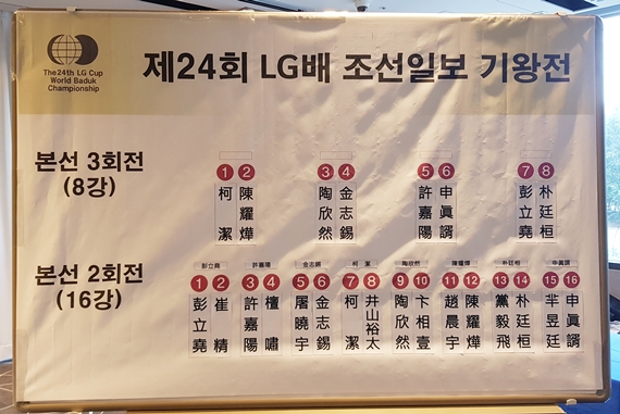 5¿ù29ÀÏ °æ±âµµ ±èÆ÷½Ã ¸¶¸®³ªº£ÀÌ È£ÅÚ¿¡¼ ¿¸° Á¦24ȸ LG¹è Á¶¼±ÀϺ¸ ±â¿ÕÀü 16°¿¡¼ Çѱ¹ ¹ÚÁ¤È¯, ½ÅÁø¼, ±èÁö¼®ÀÌ ½ÂÀüº¸¸¦ ÀüÇß´Ù. Áß±¹Àº Ä¿Á¦, Æã¸®¾ß¿À, Ÿ¿À½Å¶õ, ½¬ÀÚ¾ç, õ¾ß¿À¿¹ µî 5¸íÀÌ 8°¿¡ ¿Ã¶ú´Ù.
