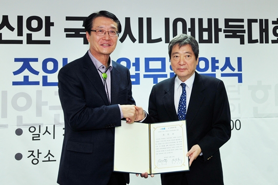 ¡ãÁö³­ÇØ 12¿ù ‘1004¼¶ ½Å¾È ±¹Á¦½Ã´Ï¾î¹ÙµÏ´ëȸ’ Á¶ÀÎ½Ä ¹× ¾÷¹«Çù¾à½Ä¿¡ ³ª¼± ¹Ú¿ì·® ½Å¾È ±º¼ö(¿ÞÂÊ)¿Í ÇÑ»ó¿­ Çѱ¹±â¿ø ºÎÃÑÀç.