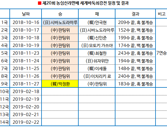 ŸÀÌÁª¿¡¼´Â ³ó½É½Å¶ó¸é¹è ¸ðµç ´ë±¹À» ¼ö¼ø Áß°èÇϸç ÁÖ¿ä ´ë±¹Àº ÇÁ·Î±â»ç°¡ ¹®ÀÚÇØ¼³ ÇÑ´Ù(18ÀÏ À±ÂùÈñ8´Ü, 19ÀÏ °½Â¹Î6´Ü, 20ÀÏ ½Å¹ÎÁØ9´Ü, 21ÀÏ È«¼ºÁö9´Ü, 22ÀÏ È«¼ºÁö9´Ü). ¶ÇÇÑ ³ó½É½Å¶ó¸é¹è ÀÀ¿øÀ̺¥Æ®µµ ÁøÇà ÁßÀÌ´Ù. ¿ì½ÂÀÚ ¸ÂÈ÷±â¿Í ÀÀ¿ø¾Æ¹ÙŸ ±¸¸Å À̺¥Æ®°¡ 2¿ù19ÀϱîÁö À̾îÁø´Ù.