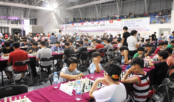¡ã°¸ª¿µµ¿´ëÇб³ üÀ°°ü¿¡¼ ¹ú¾îÁø 2018 ¼¼°èû¼Ò³â ¸¶Àε彺Æ÷Ã÷´ëȸ °¢ºÎ °æ±â°¡ ¹úÀÌÁö°í ÀÖ´Ù.