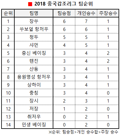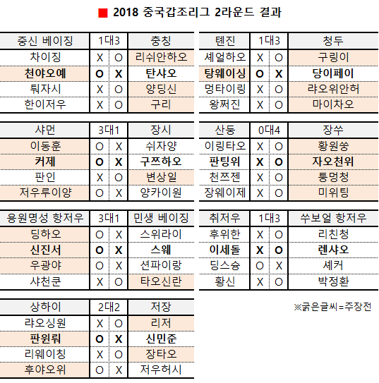 ¿ù28ÀÏ ¿­¸° 2018 Áß±¹°©Á¶¸®±× 2¶ó¿îµå¿¡¼­ ¹ÚÁ¤È¯, ½ÅÁø¼­, º¯»óÀÏ, À̵¿ÈÆÀÌ ½ÂÀüº¸¸¦, À̼¼µ¹°ú ½Å¹ÎÁØÀº ÆÐÁ¡À» ±â·ÏÇß´Ù.