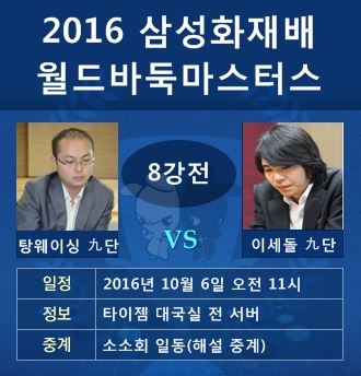 2016 »ï¼ºÈ­Àç¹è ¿ùµå¹ÙµÏ¸¶½ºÅͽº º»¼± 8°­ÀüÀÌ 10¿ù6ÀÏ ¿ÀÀü 11½Ã ´ëÀü »ï¼ºÈ­Àç¹è À¯¼º¿¬¼ö¿ø¿¡¼­ ½ÃÀ۵ƴÙ.