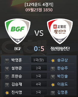¡®Á¤°üÀå ȲÁø´Ü-BGF¡¯´Â ³ª¶õÈ÷ 6½Â5ÆÐ¸¦ ±â·Ï ÁßÀÎ 3-4À§ÆÀ °£ÀÇ ÀÏÀüÀ̾ú´Ù. ƯÈ÷ °³ÀÎ ½Â¼ö°¡ ºÎÁ·ÇÑ »óÅ¿¡¼ ÃÖ±Ù 3¿¬ÆÐ¸¦ ´çÇÑ BGF·Î¼± ÀÌ °æ±âÀÇ ½Â¸®°¡ Àý½ÇÇß´Ù. Á¤°üÀå ȲÁø´ÜÀÇ 1Áö¸í ½ÅÁø¼¿Í 2Áö¸í ÀÌâȣ°¡ õºÎ¹è ÃâÀüÀ¸·Î ³ª¶õÈ÷ ºüÁ³´Ù´Â °ÍÀÌ ´õ ¾ø´Â È£ÀçÀÏ ¼ö ÀÖ¾ú´Ù.