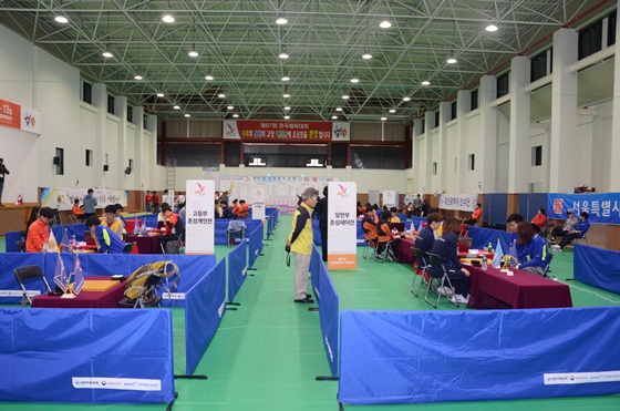 ¡ã ¶óÀÎÀÌ »ì¾ÆÀÖ´Â ¹ÙµÏ´ëȸ! ´ëÇѹٵÏÇùȸ¿¡¼ ¼ö³â°£ ÁغñÇÑ °æ±âÀå ±¸¼ºÀº ÃæºÐÈ÷ ĪÂù¹ÞÀ»¸¸ Çß´Ù. ¶óÀÎ ¾ÈÂÊ¿¡´Â ´ë±¹Àå°ú ½ÉÆÇ¼®ÀÌ ÀÖ´Ù. Àü±¹Ã¼Àü Á¤½ÄÁ¾¸ñÀ¸·Î Ä¡·¯Áø ¹ÙµÏ °æ±â´Â ¾ö°ÝÇÑ °ø°£ ºÐ¸®°¡ ÀÌ·ïÁ³´Ù´Â Á¡ÀÌ Æ¯Â¡À̾ú´Ù. ¼±¼ö´Ü °ü°èÀÚ(°¨µ¶ ÄÚÄ¡ µî)µéÀº Á¤ÇØÁø ¶óÀÎ ¹Ù±ù¿¡¼ °üÀüÇÒ ¼ö ÀÖ¾ú´Ù.